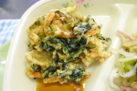 かき揚げです。旬のほうれん草は、ビタミンと鉄分が