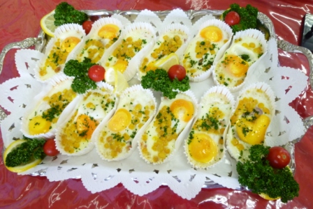 ベーコンエッグ             鮭のマヨネーズ焼き          ミートボール