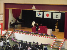 始業式に続き、入学式を行いました。今年度の新入生は68名。みんな、お行儀良く元気です。ぴかぴかの1年生。はやく上柴東小学校の生活に慣れてください!!