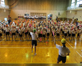 今日は雨のため、応援団練習を体育館で行いました。子供達の声と心が一つになってきました。