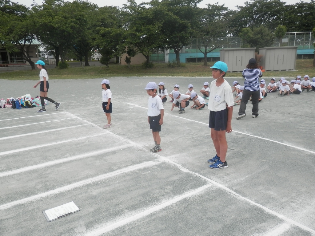 昨日は、1.6年生の新体力テストでした。6年生が手伝いをしていました。1年生を並ばせたりボール投げの補助をしていました。1年生も精一杯取り組んでいました。