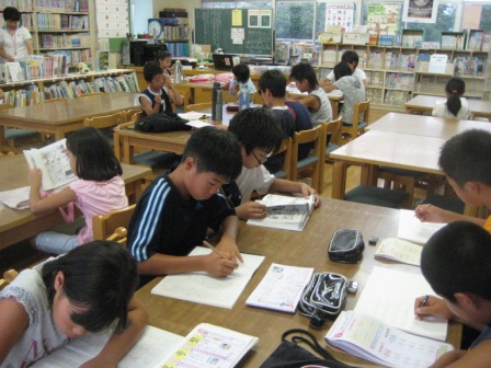 本日、夏休み期間中の4回目の図書室開室(9:00~11:00)です。宿題や図書貸し出しなど計画的にすすめている子ども達がいます。