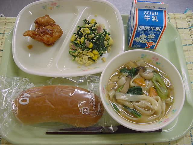 牛乳 黒パン 鶏肉のレモン煮 ほうれん草と卵のソテー