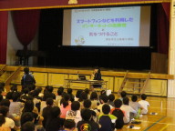 4~6年生は、3時間目に体育館で「ネットアドバイザーによる親子講座」を行いました。講師の先生から、インターネット依存による健康被害(脳機能障害)などのお話をしていただきました。スマートフォンを使わせる前には、「スマホの約束」を決めて、正しく安全に使えるように親子で話し合ってください。