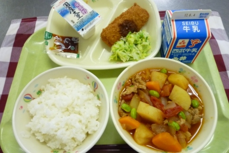牛乳 ご飯 イタリアン肉じゃが イカフライ センキャベツ 冷や奴