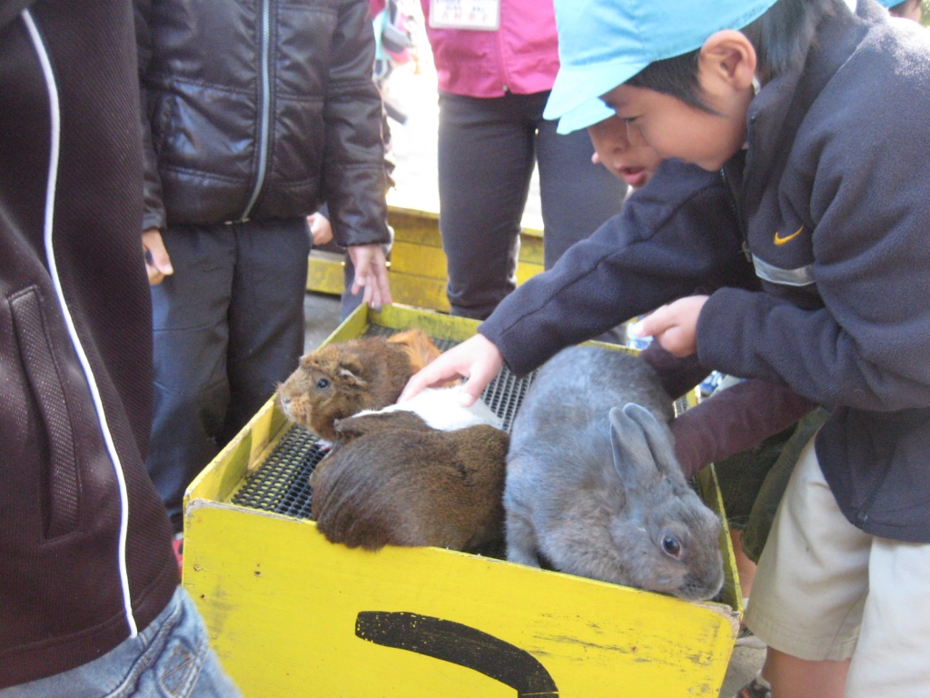 なかよしコーナーでウサギやモルモットと触れ合いました。初めてウサギを抱いた子も、命の温かさを感じました。モルモットの体をどう持ち上げたらいいか、体験することで、力加減がわかりました。