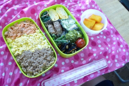 子どもたちは、朝早く起きて、自分の力だけでお弁当を作ってきました。