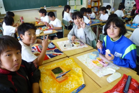 マイ弁当を食べる子どもたちは、自分で作ったという自信満々なステキな笑顔でした!