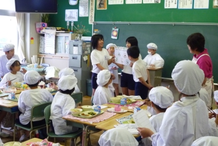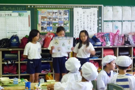 6月は食育月間です。そこで給食委員会では、各教室へ行って、