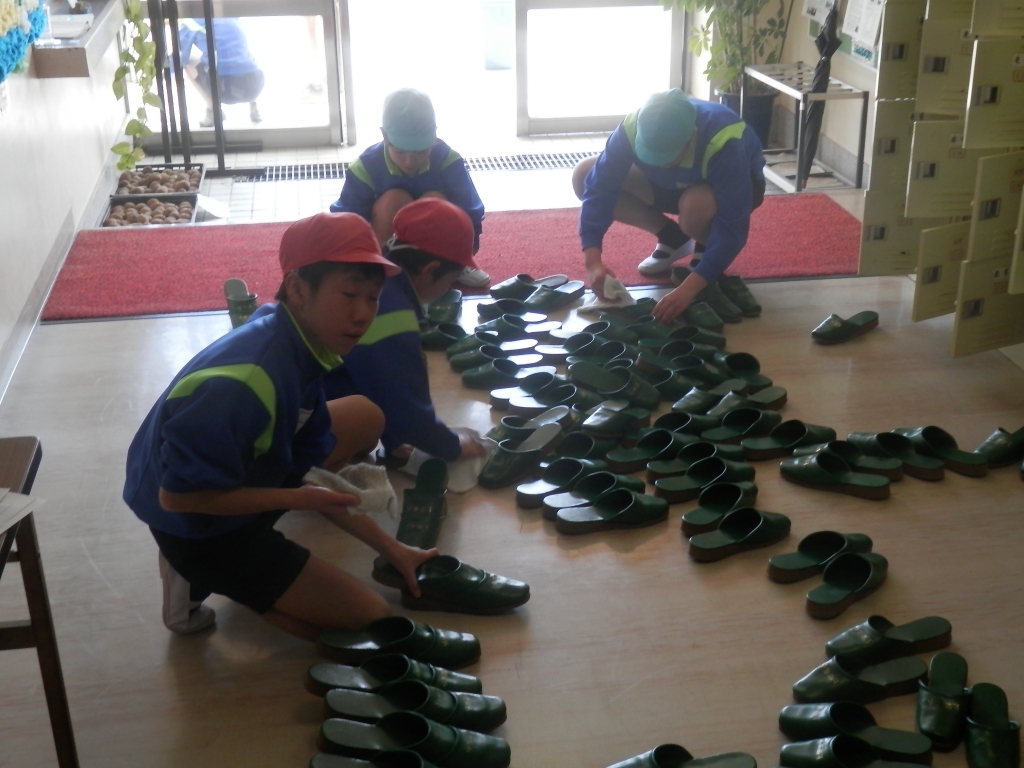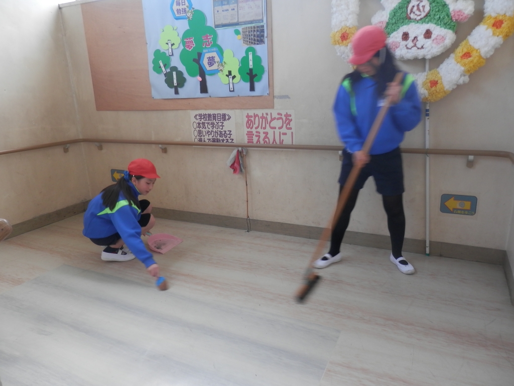 6年生の総合的な学習の時間で「飛びたて未来へ」の取組をしました。その一環として校舎のトイレや玄関などたくさんの場所をきれいにしてくれました。普段、無言清掃をしていますが今回も数人でグループを組み、協力し合いながら取り組んでいました。今までお世話になった学校をきれいにして卒業を迎えます。6年生ありがとう。