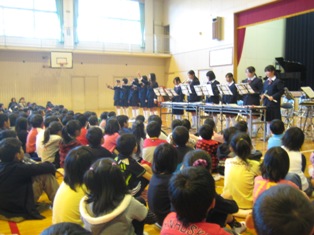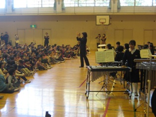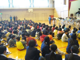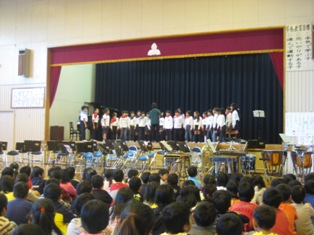 上柴中学校音楽部のみなさんは「未来へ」「世界に1つだけの花」「カントリーロード」を11名とは思えないほどの響きのある美しい声で歌ってくださいました。アンコールでは「上柴中学校校歌」を歌ってくださいました。小学生は自分が歌うことになる中学校の校歌を初めて聴いた子もたくさんおり、とてもありがたかったです。