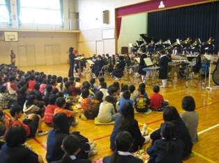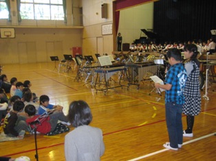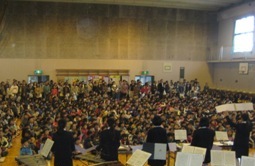 上柴中学校吹奏楽部のみなさんは「ふるさと」「マル・マル・モリ・モリ」「ありがとう」「ワンピースのテーマ」を演奏してくださいました。子ども達が知っている曲では、体を揺らしたり一緒に踊ったりしながら演奏を楽しんでいました。アンコールでは「マル・マル・モリ・モリ」をもう一度演奏してくださり、手拍子や歌声もあり会場全体が1つになりました。