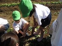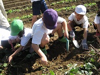 秋晴れの下、なかよし・ひまわり・そよかぜでさつまいもほりを行いました。