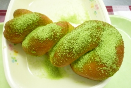今日は、5月「新茶の季節」にちなんだ《抹茶揚げパン》です。