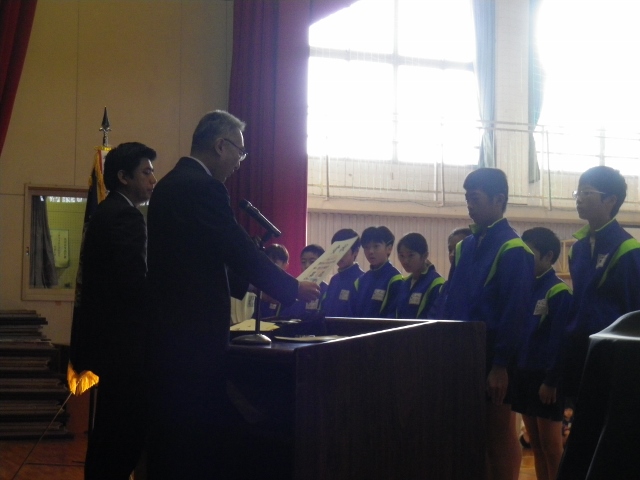 15日(火)は、表彰朝会でした。
