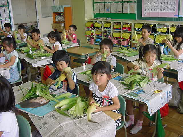 そこで、今日は、1年生の生活科の時間に「とうもろこしの皮むき」