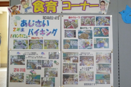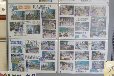 食育コーナーに、2年生の『あじさいバイキング』の写真を掲示しました。