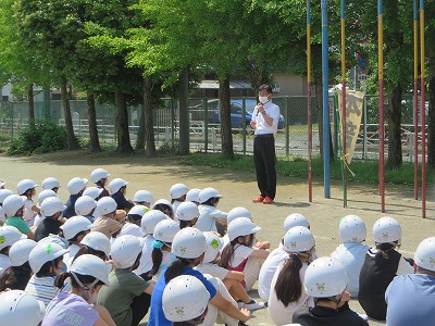 今年度最初の避難訓練を行いました。今回は地震が起こった想定で避難をしました。