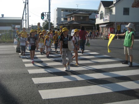 9月1日~3日まで、2学期始めの登校指導を行いました。各班とも班長さんを先頭に並んで歩いてきています。暑い日差しが朝から照りつけていましたが、元気な子ども達です。