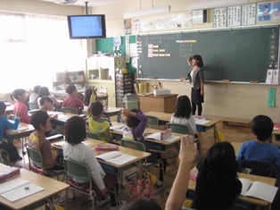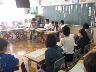 他校の児童生徒とやりとりをしている。