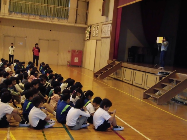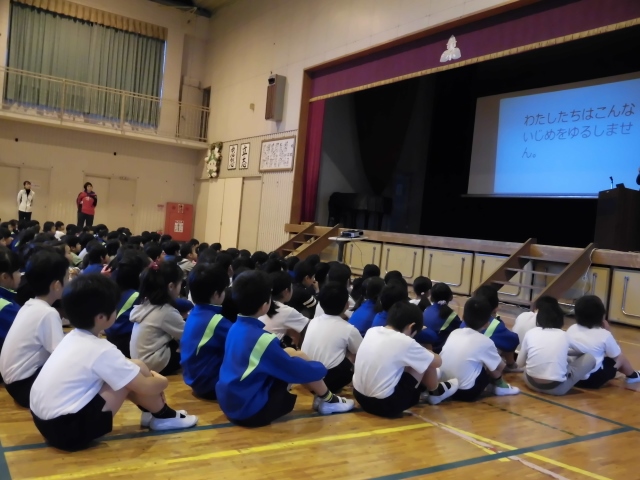 今日の全校朝会は、人権朝会でした。人権メッセージの中からいじめ防止について話をしました。いじめのない、楽しい学校生活を送るために各クラスで話し合い、実践していくことが大切です。  「自分を大切に」「人を大切に」をいつも意識して生活を送りましょう。