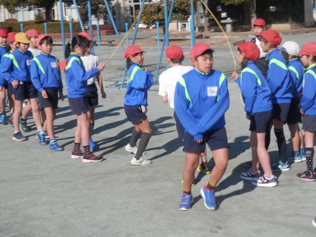 2月2日、3日に校内長なわとび大会があります。それに向けて子供たちは、時間を見つけて練習をしています。始業前の時間や休み時間に各クラス練習に励んでいます。さわやかタイム(業間運動)でも長なわ跳びの練習をしました。3分間子供たちは、精一杯跳んでいました。