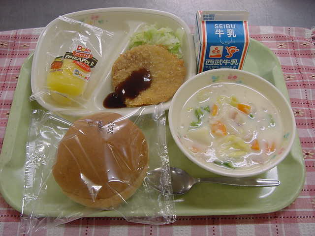 牛乳 ハムカツサンド 野菜たっぷりクリームシチュー