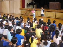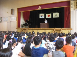 始業式では、1年生と4年生の代表児童が2学期の抱負を述べました。