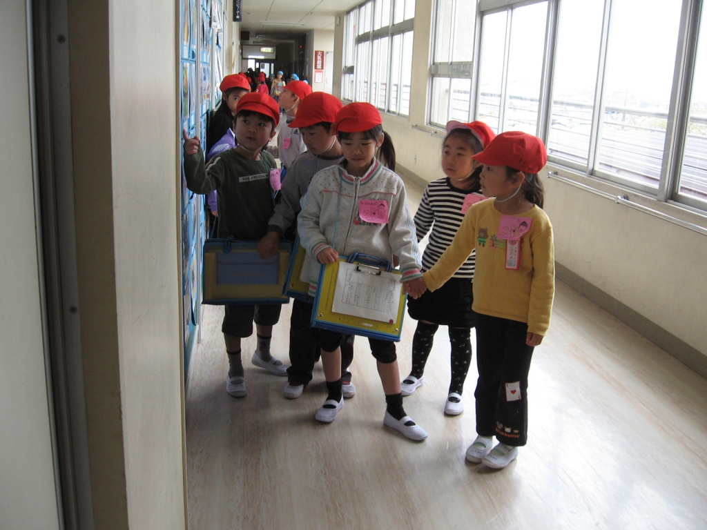 手をつなぎながらいろいろな教室をまわりました。
