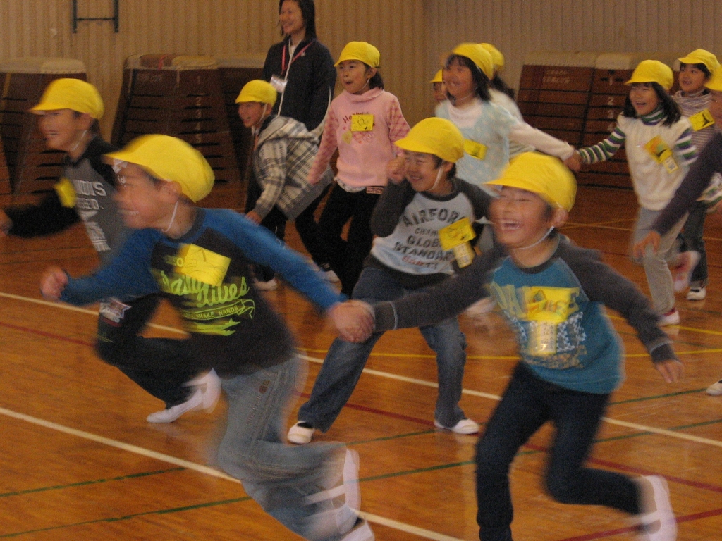 校舎内の案内をし、体育館で楽しく遊ぶことができました。