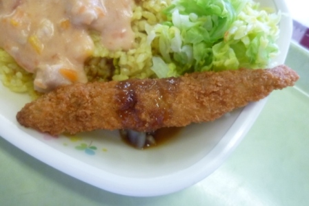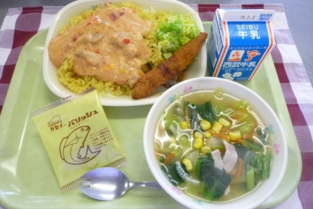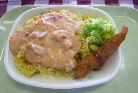 牛乳 カレーピラフ・トマトクリームソースかけ