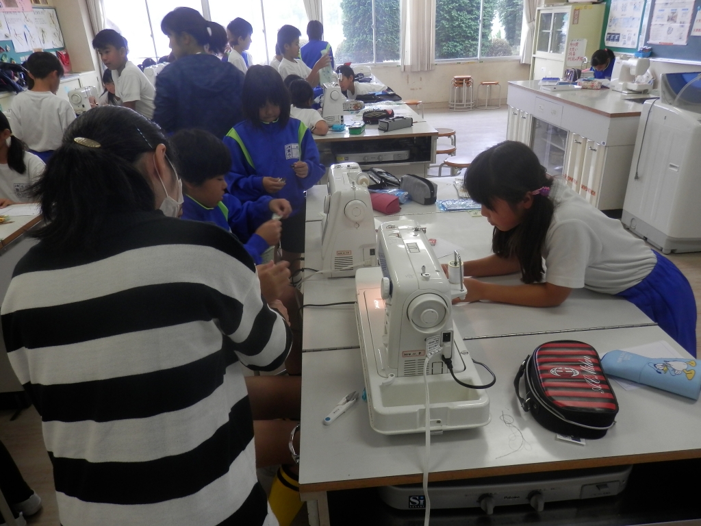 5年生の家庭科でミシンの実習をしていました。保護者のボランティアの方にお世話になっていました。細かい作業ですが、ていねいにミシンをかけていました。ありがとうございます。