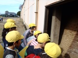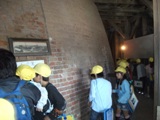 全部で3か所行きました。最初に訪れたのは、レンガ工場があった「旧レンガ施設」です。レンガを焼いた「ホフマン輪窯」を実際に見ることができ、子ども達も感動していました。また、レンガと渋沢栄一の関係性について話をしてくださいました。