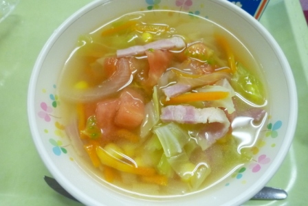 今日の野菜スープは、6年生の保護者から頂いた朝食レシピを