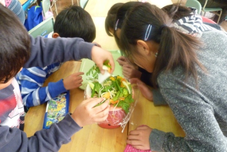 子どもたちは野菜とふれ合い、野菜を身近に感じ、野菜の大切さを学んでいます。