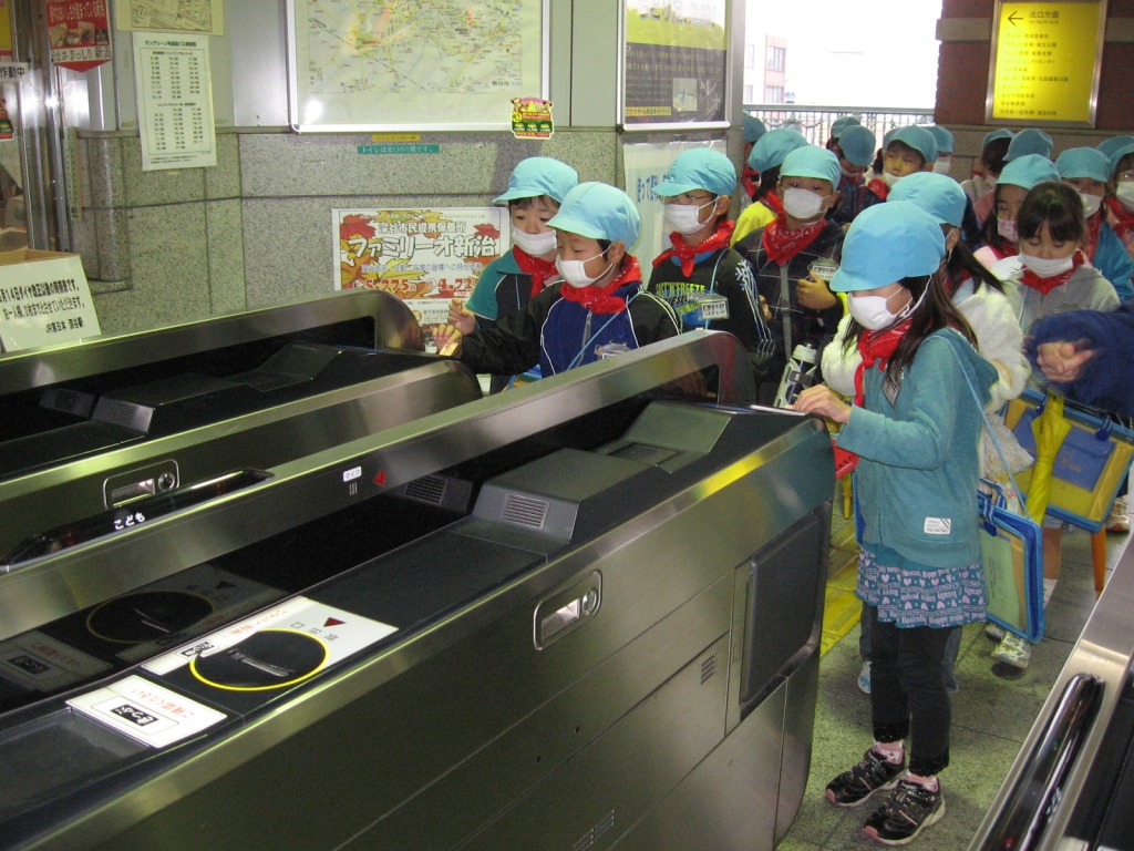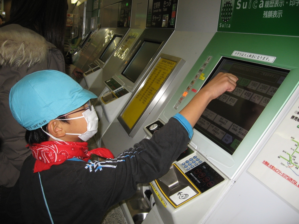 「110円入れて、切符を買ったよ。」    「切符を入れると、前のドアが開いたよ。」