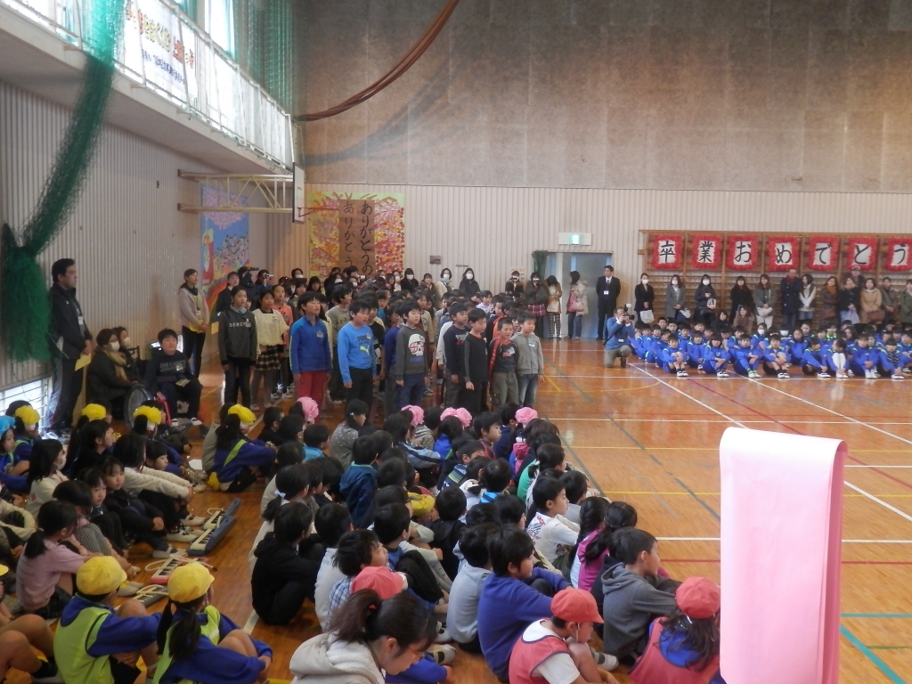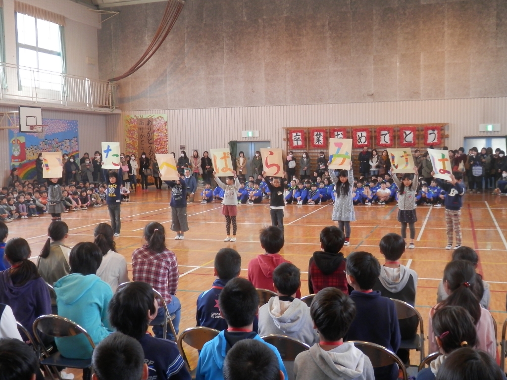今日2校時に6年生を送る会をしました。各学年練習を積んで本番を迎えました。6年生には、たくさんのやさしさをありがとう。そして、下級生からは、6年生への「ありがとう」と「中学校でも頑張れ」というエールが送られました。上柴東小の子供達の気持ちが伝わったと思います。卒業式まで残りあとわずかです。元気に、なかよく過ごしてください。