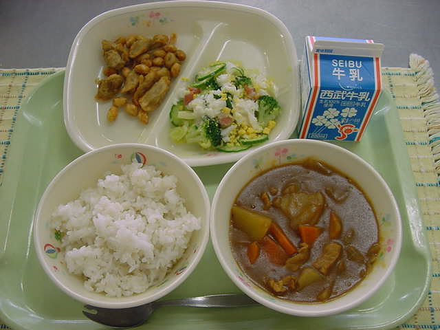 牛乳 カレーライス ごぼうと大豆のカリカリ揚げ