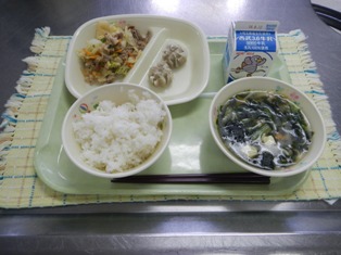 ごはん 牛乳 回鍋肉 蒸しシュウマイ 中華スープ