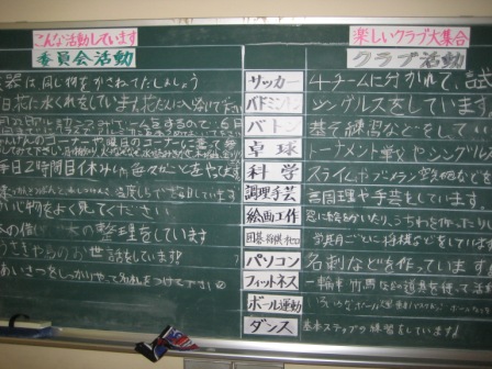 1階廊下には、5/6年生が活動する委員会と4~6年生が所属するクラブ活動の掲示があります。昨日のクラブ活動では元気に協力して運動、調理、パソコンなどに取り組んでいました。