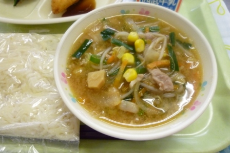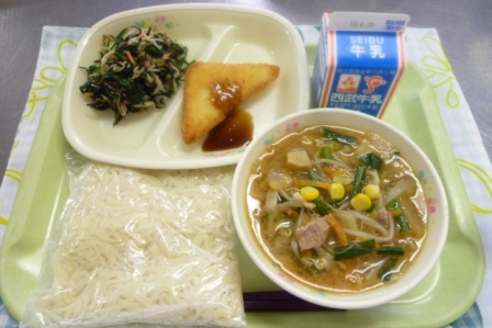 新学期の給食は「ゴマ味噌ラーメン」でスタートしました。