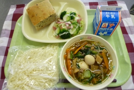 牛乳 しょうゆラーメン ブルーベリーパンケーキ