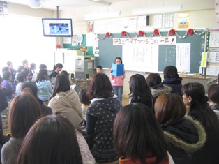インフルエンザの感染増加にともない、先週延期になった2年3組、5年生の授業参観を本日行いました。4学級とも、子どもが発表する機会がありました。その際、子どもたちの発表が視覚的にもうったえるようICTを活用していました。できるようになったことや心に残ったこと、友達への感謝の気持ちなどを伝える姿に、1年間の成長が伺えました。
