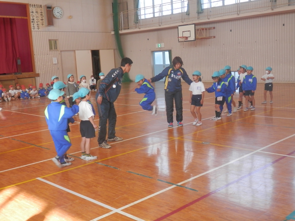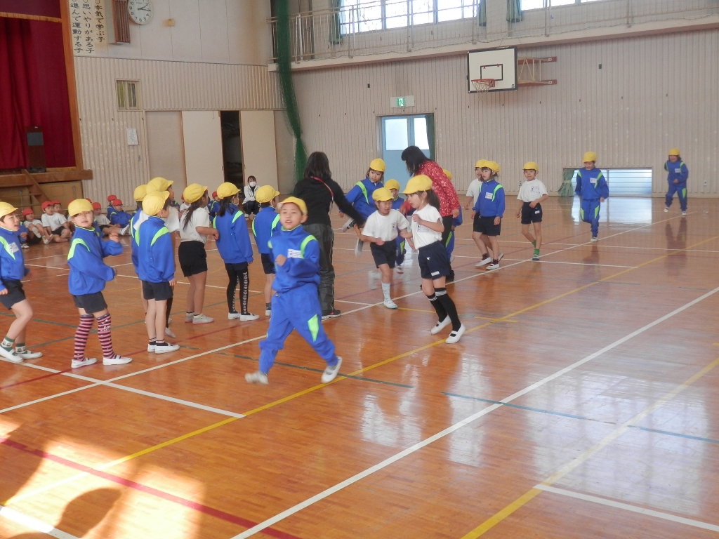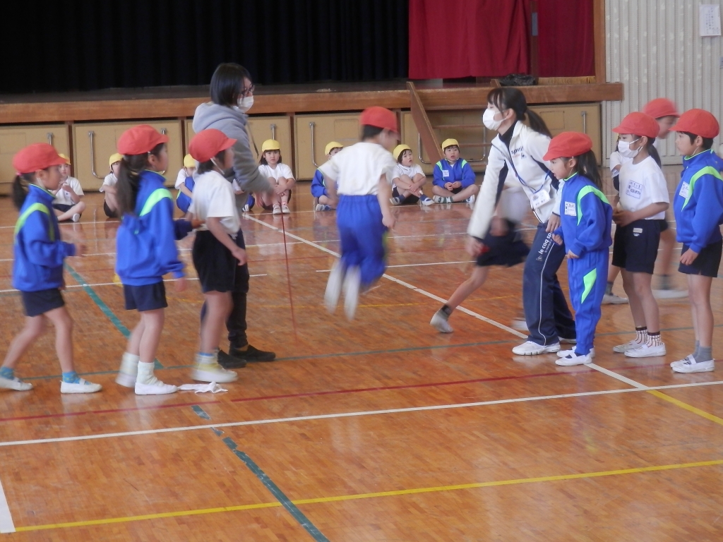 5校時に体育館で1年生が長繩大会をしました。クラスの目標があり、その目標を目指して頑張っていました。休み時間に先生と一緒に練習をしていました。記録更新になったのでしょうか。歓声があがっていました。
