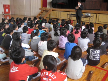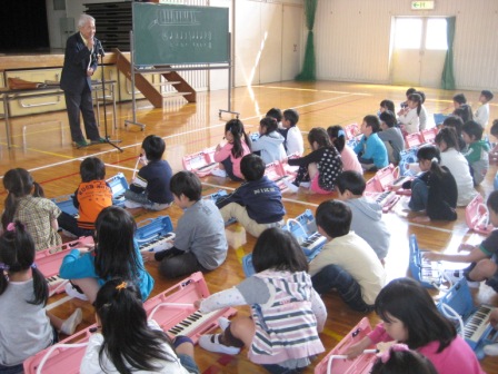 3年生はリコーダー講習会、1年生は鍵盤ハーモニカ講習会を行いました。音楽で学習する初めての楽器に興味津々。講師の先生の説明にわくわくした瞳が輝きました。