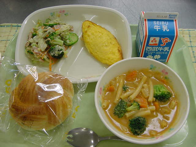 牛乳 ヨークロール ツナオムレツ セサミサラダ