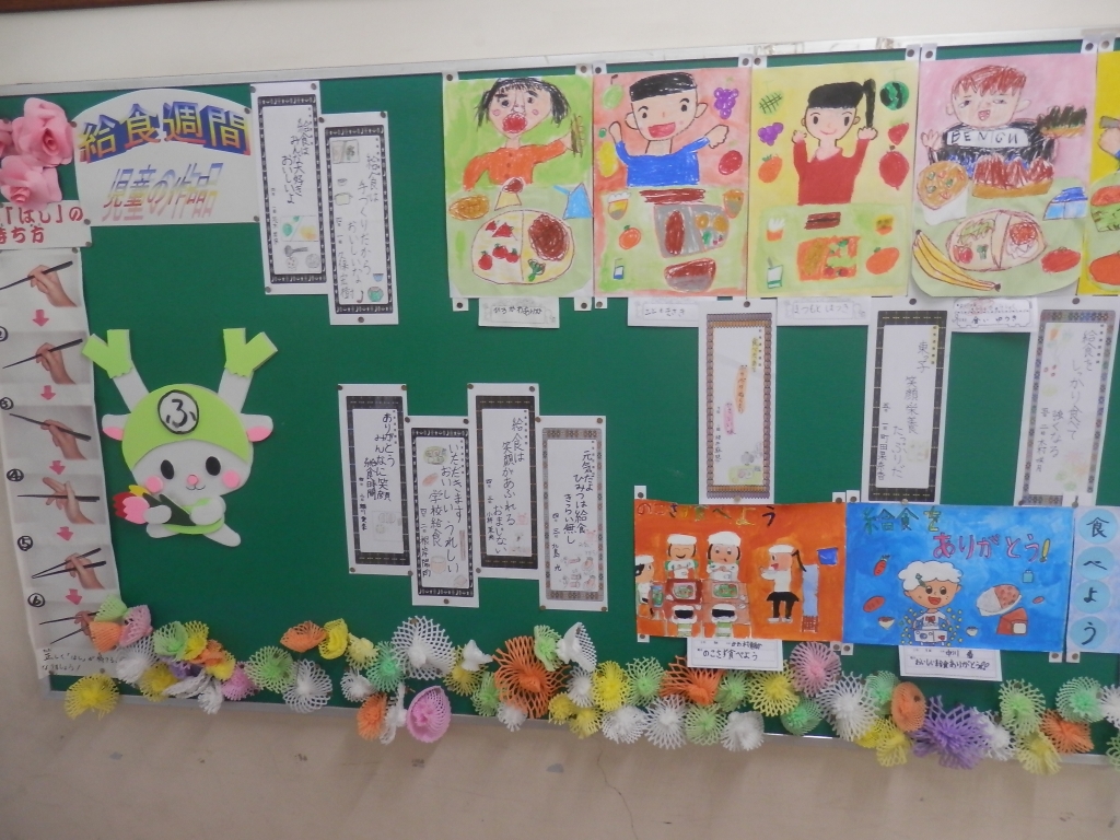 24日(火)より給食週間が始まりました。給食調理員さんへのお礼の作文や標語、絵を制作しました。毎日おいしく食べている給食です。給食週間中だけでなく、食に関心をもち感謝の心をはぐくんでいければと思います。