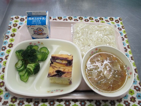 <サンマーメン 牛乳 ブルーベリーパンケーキ
