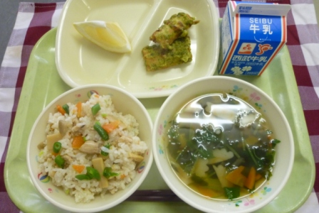 牛乳 かてめし 竹輪のカレー風味の磯辺揚げ すまし汁