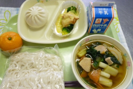 牛乳 ネギ間うどん 彩の国肉まん ブロッコリーツナマヨネーズ焼き